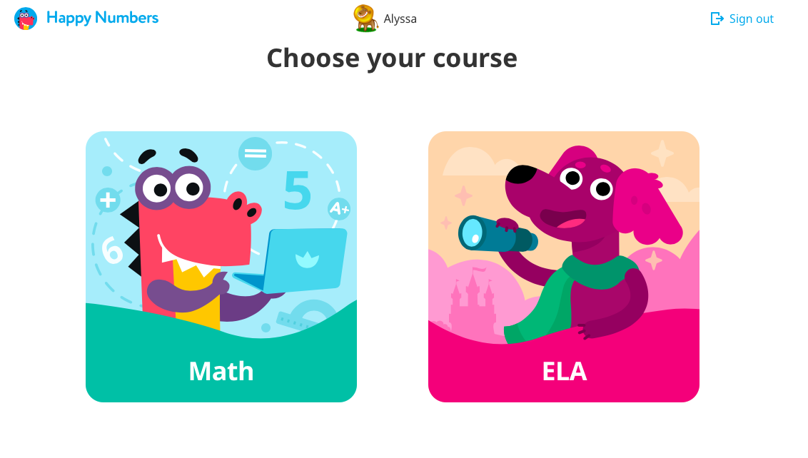 If Happy Letters is also enabled for your class, after logging in, you will be taken to a page where you can choose a course:
