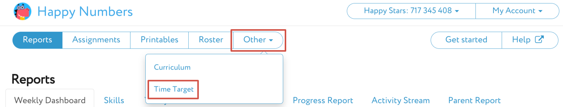 It’s important that the targets we set for students are achievable, so we have introduced a feature that enables you to adjust the weekly target of your whole class or of each student individually. To access this functionality, tap Other in the Menu Bar and select Time Target.