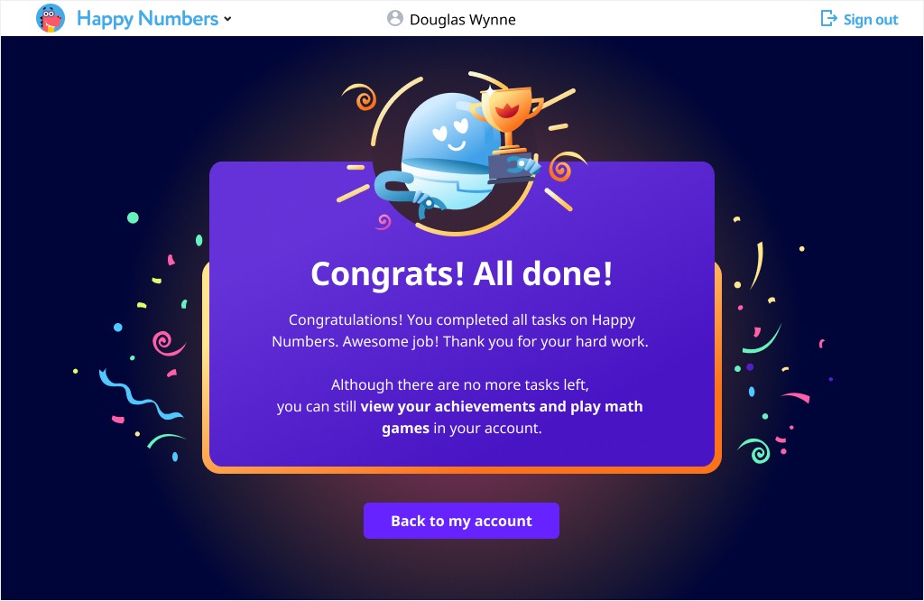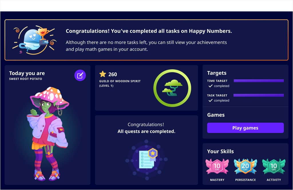 When Grades 3, 4, and 5 students complete all tasks on Happy Numbers, they can enjoy playing math games in their account: