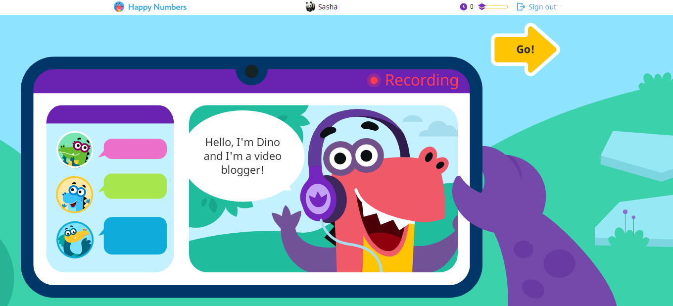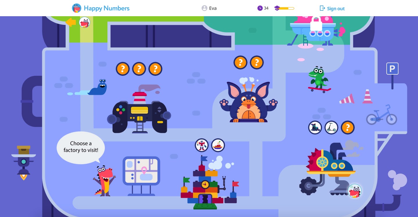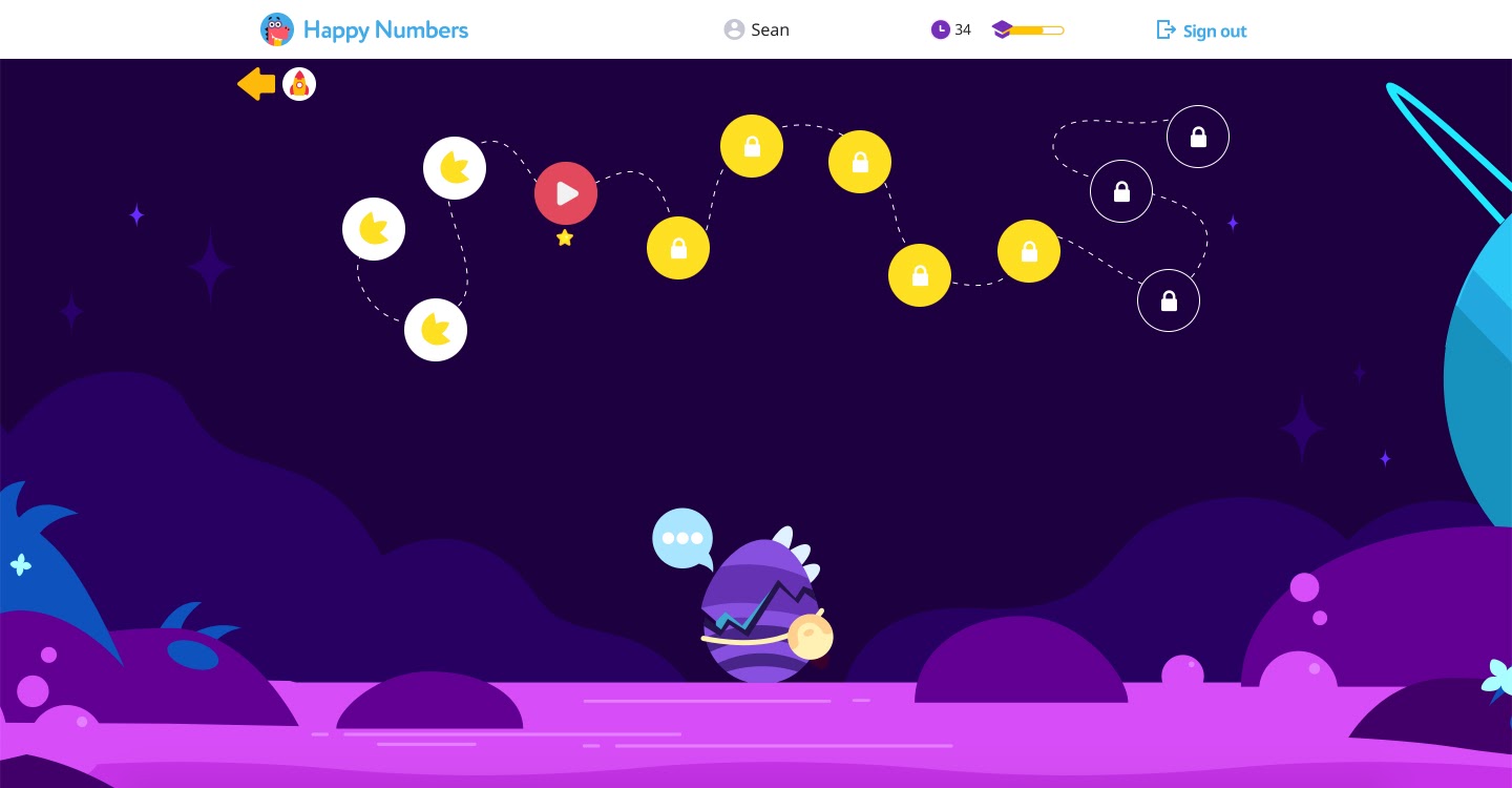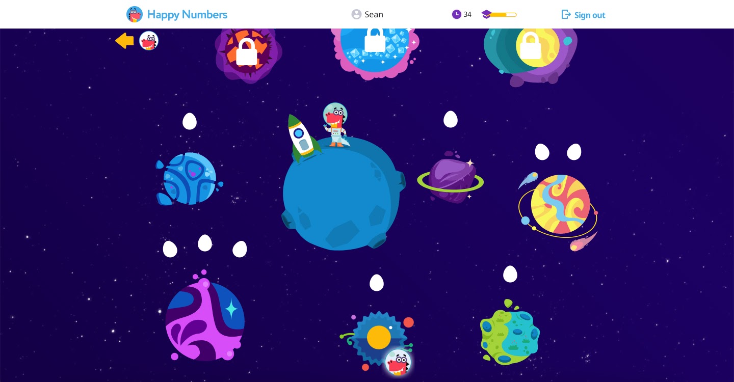 To show students how to use Happy Numbers, we guide them through a quick tutorial. With just a few clicks, their friend Dino shows them how to move through their new world of math learning.