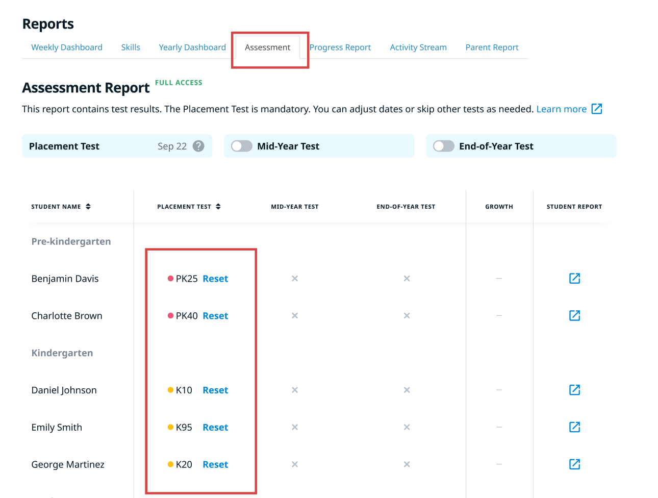 If you notice students struggling with their assignments in Happy Numbers, they might need to retake the Placement Test for more accurate results. In this case, we recommend resetting the test. The reset option is available within a 14-day window.
