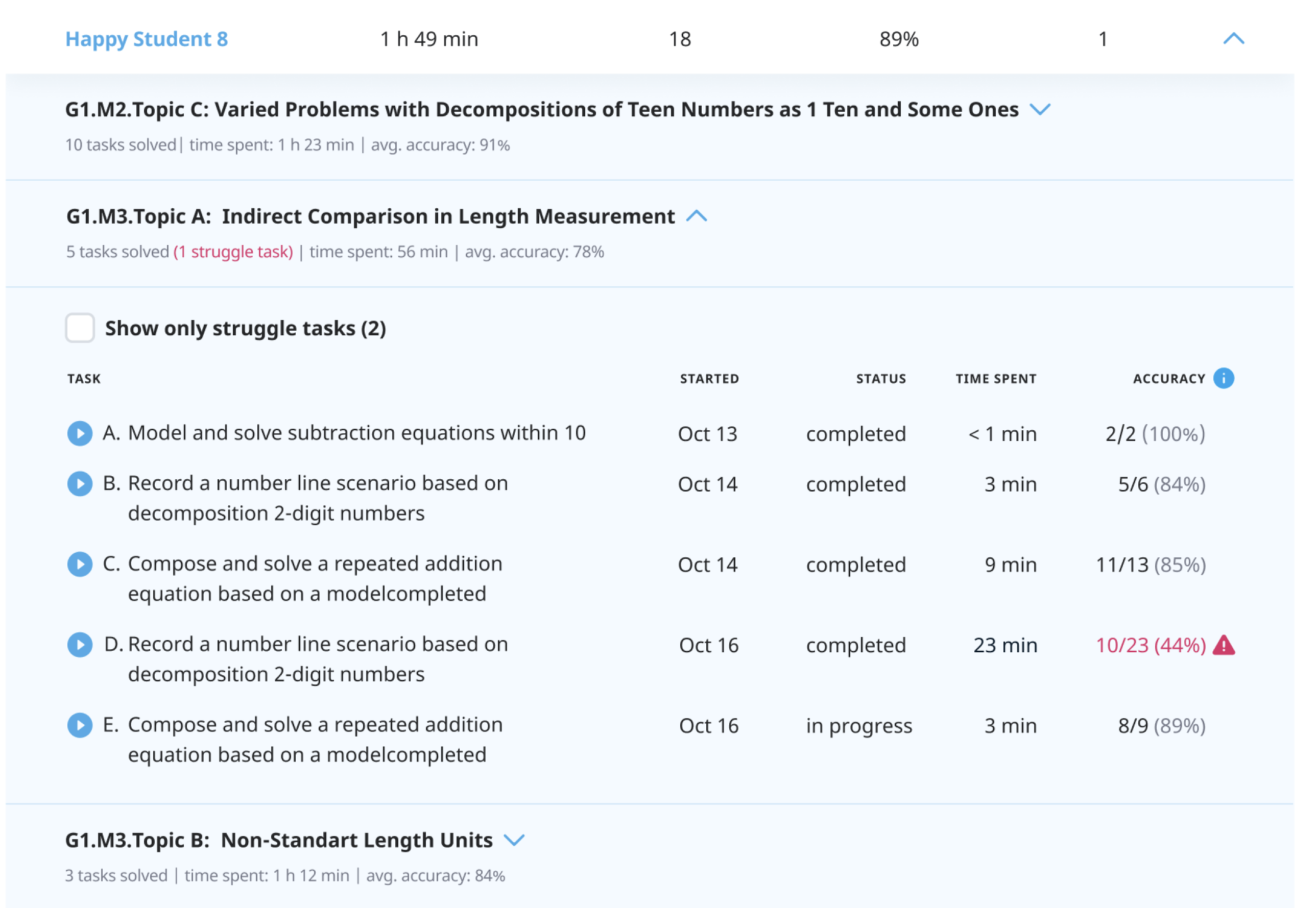 Once you’ve seen the class overview, there will likely be some students whose data you’ll want to look at more closely.