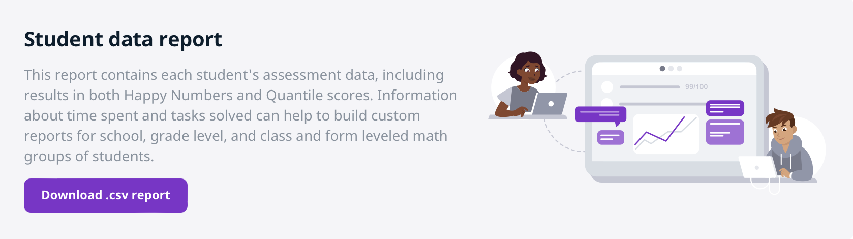 Download a Student Data Report (.csv) containing detailed information for each student.