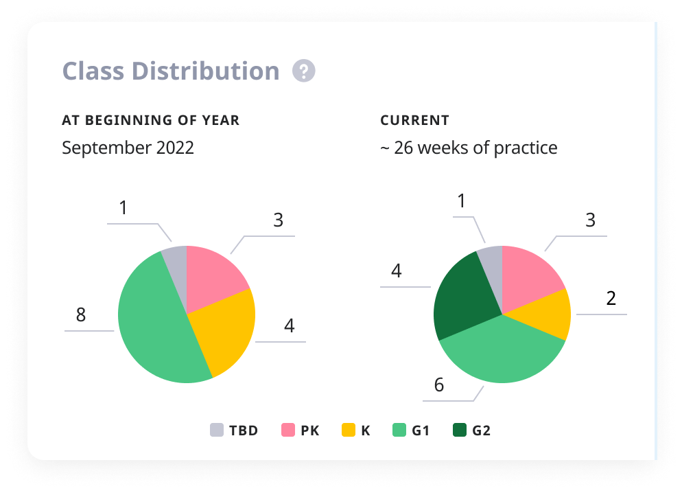 These diagrams display data on class distribution at the beginning of the year and the current week. Let’s see how a teacher can read the data from the diagrams: