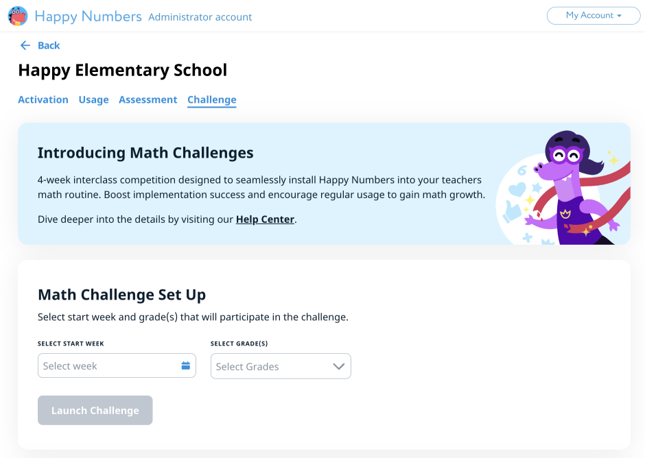 The Math Challenge is available only with School and District licenses. To learn more about the differences between license types and what features are available, please visit this page.