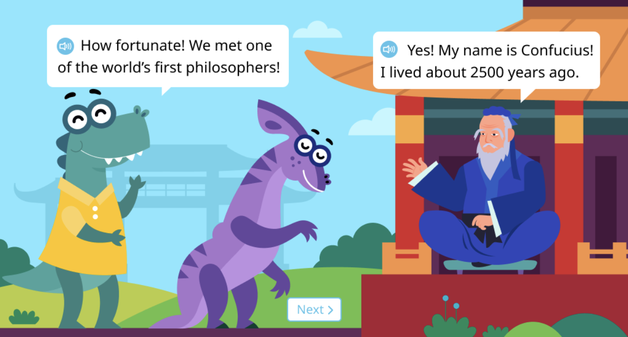 To engage every student and inspire their imagination, we create characters and stories. Due to diverse scenarios, each student can find something they may connect with in the Happy Numbers content. Below are several examples of contexts in which students interact with mathematical concepts on Happy Numbers.
