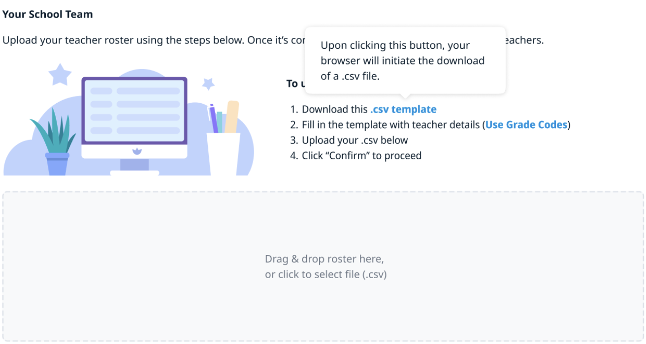 To add new teachers to your school team, simply upload a new CSV file with their information.