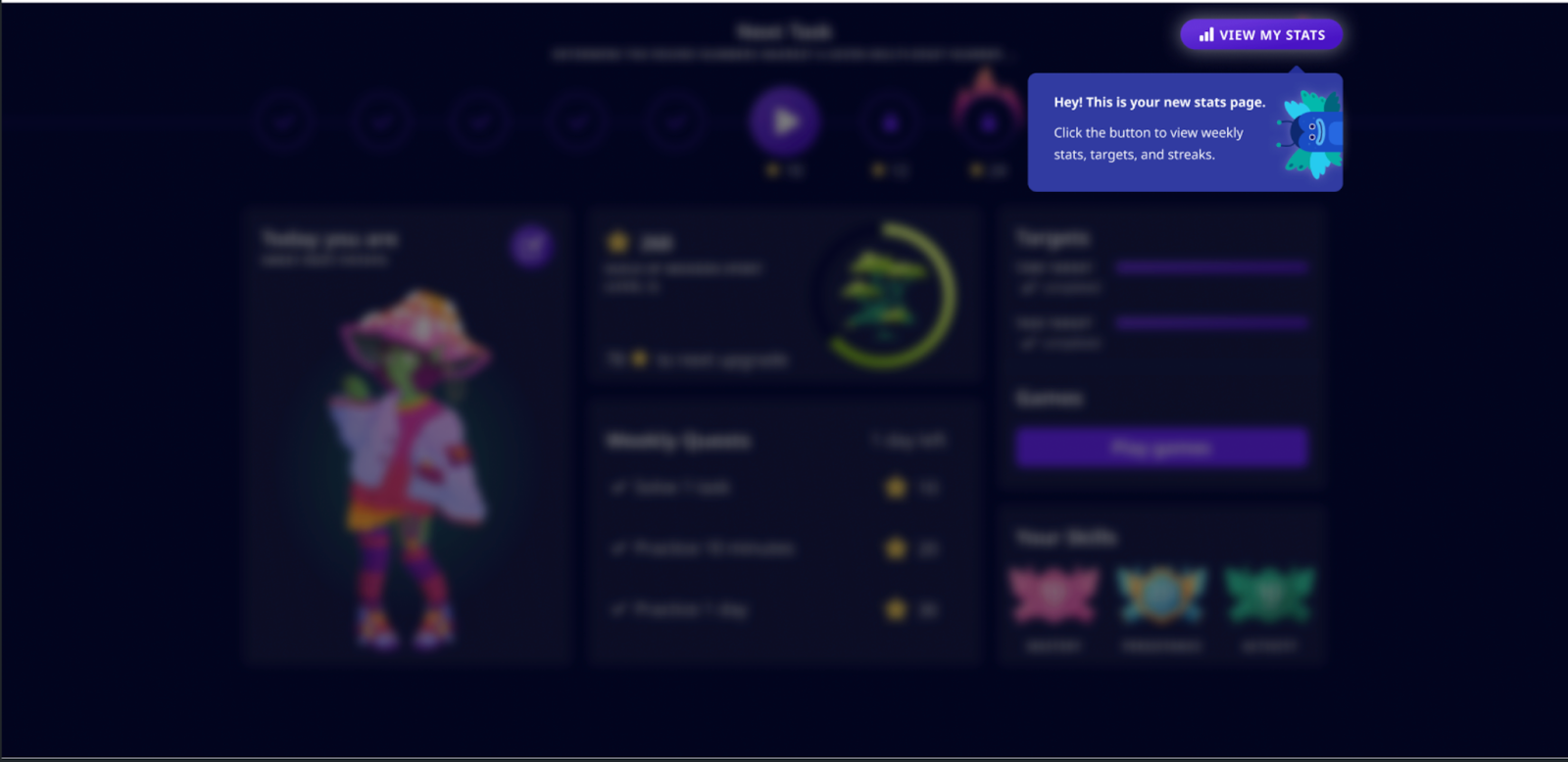 It allows students to monitor their weekly targets, task completion, and streaks. This feature encourages self-reflection and helps students celebrate their achievements.