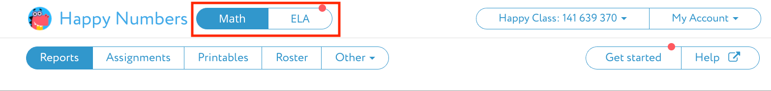 The first thing you’ll see in your teacher account is a Math and ELA switching tab.